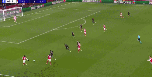 第33分钟,打破阿森纳不丢球金身!格纳布里助攻卡尔扳平比分,拜仁1-1