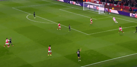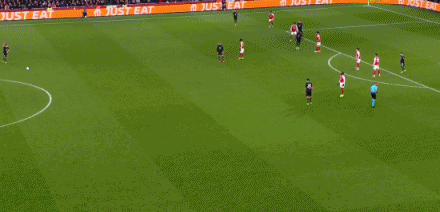 第34分钟,格纳布里左路防守,差点被萨卡身后超车