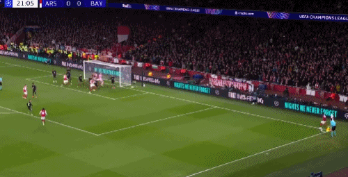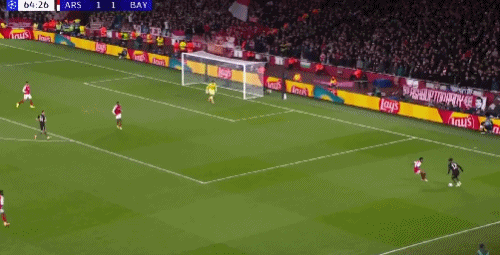 第22分钟,角球无解!廷贝尔角球中头球破门,阿森纳1-0拜仁!